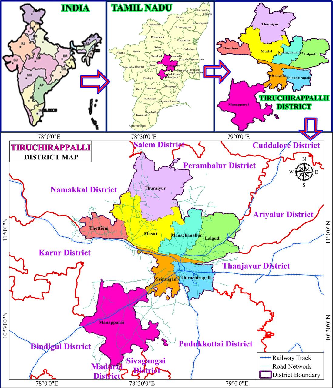 The Tiruchirappalli district is located in the Cauvery River basin and also part of the Cauvery Delta Zone in Tamil Nadu, India.